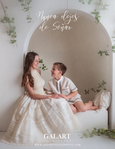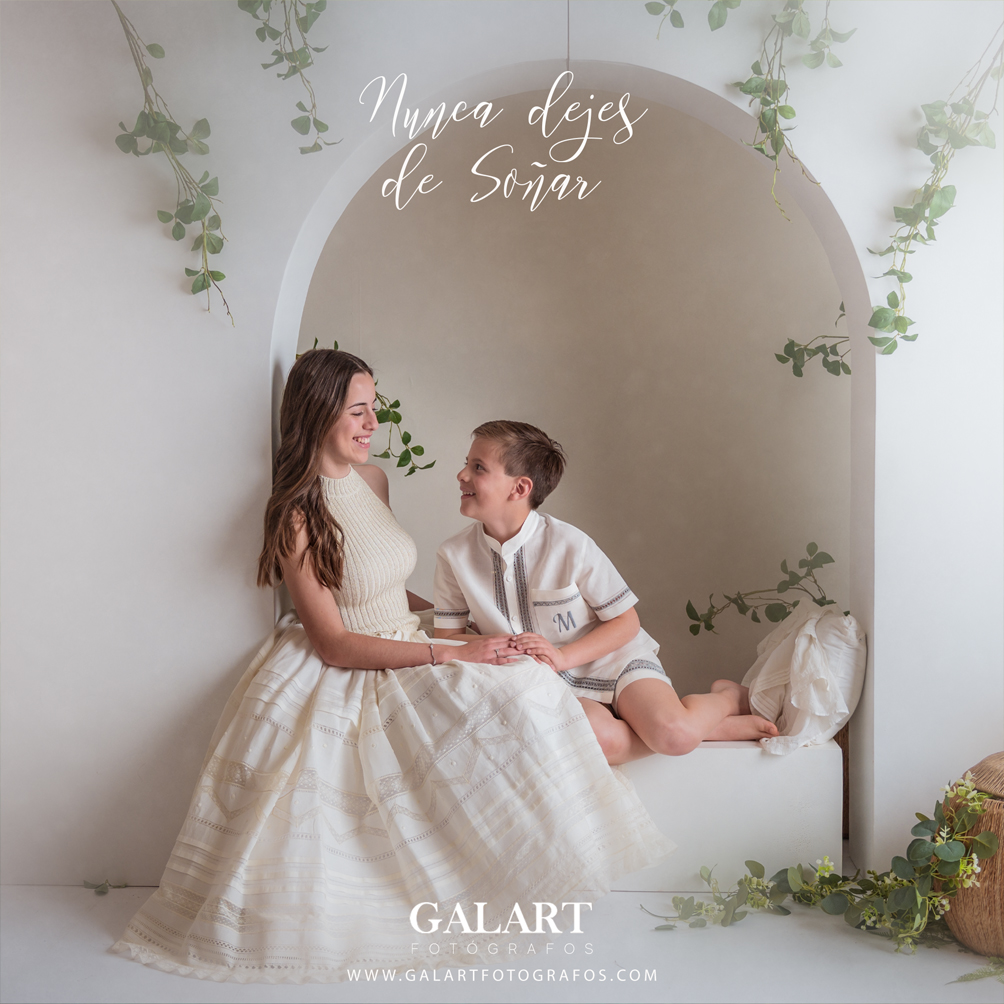 Es un gran momento para realizar un reportaje fotográfico de comunión o familia, de esta etapa de la preadolescencia o final de la infancia para que sea recordada, pudiéndose realizar la sesión fotográfica tanto en estudio como en exteriores, con ropa informal solamente con nuestra campaña mis 9 o traje de comunión.